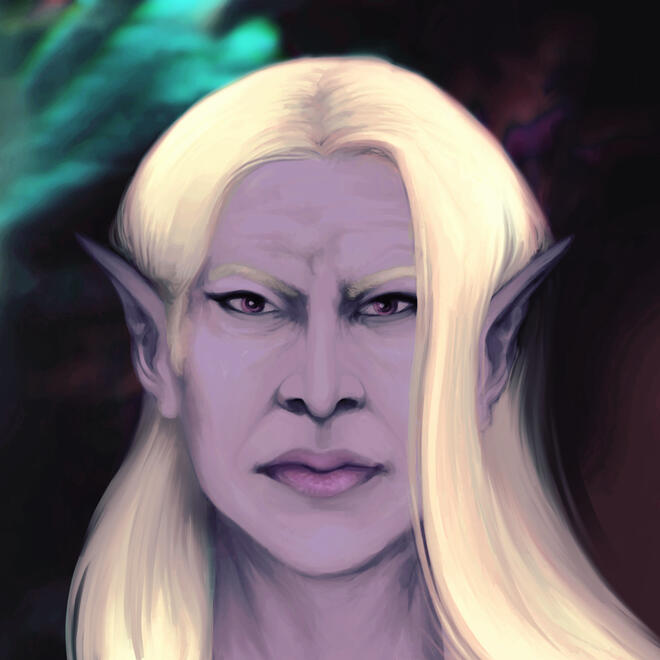 Mazarin was born under the House of Arvis in the Feywild. The family had close ties to the Seelie Court, and enjoyed a relatively carefree, high status existence. Mazarin lived as a girl for the duration of his childhood and a few years into adulthood, going by Mazarine. His first love was a volatile young elf named Elethis Tuessa, who had been brought to the Feywild by his tutor, Mazarin’s cousin, Salera of House Ohanduan. Their relationship was rocky most of the time, and eventually Mazarin found out that Elethis was secretly working for the Unseelie court in opposition of him.Elethis arrived at Mazarin’s family manor and killed all of the servants and courtiers as well as Mazarin’s uncle, Pavanti. He had underestimated the lengths Elethis would go to wreak havoc to meet his own ends. He managed to convince him to stop his fiery charge. Soon after Salera exiled Elethis from the Feywild for good.Mazarin was left to pick up the pieces of the massacre, now exposed and vulnerable to the cruel fancies of the Unseelie. House Arvis was targeted for a rampage of the Wild Hunt, which tore through the manor with the aim of finishing what Elethis started. They were searching for a relic that had been stolen from the Unseelie many centuries ago. Mazarin took the relic - a mummified pixie imbued with powerful air and dark magic - and broke it two in front of the Wild Hunters. Then he left the Feywild with it.In the mortal world, he destroyed the broken remains of the artifact, first crushing it to dust, then scattering it into the sea on the Sword Coast.He has stayed in Faerûn since, adjusting himself in ways his family had prevented him from doing. He’d been in line to birth an heir, should he hurry up and marry. He never wanted it, and was now free of any expectations. He dropped the ‘e’ from his name and found a powerful transfiguration wizard to resculpt his body into its most comfortable form.He relished life as a man, away from the Feywild. He was free to pursue his interest in the realm of psychic magic, and now wanders the earth honing his skills, and generally behaving like a fairy; causing benign mischief, mostly, in pursuit of experimentation.